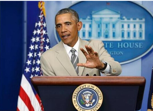 近日,奧巴馬因一件米灰色的西裝被民眾吐槽調侃。米灰色的西裝與奧巴馬黑黑的膚色實在有點不搭。